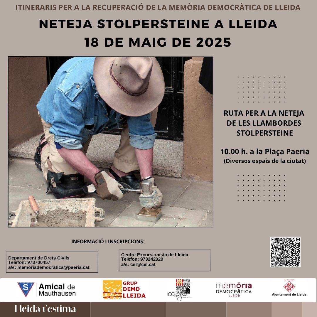 2025 05 18_ITINERARI: RUTA PER A LA NETEJA DE LES LLAMBORDES STOLPERSTEINE DE LA CIUTAT DE LLEIDA.