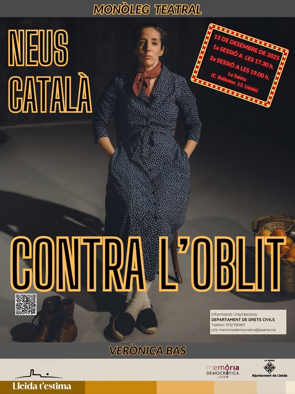 L’Ajuntament de Lleida, en el marc de la programació de Memòria Democràtica per a la tardor de 2025, acollirà la representació del monòleg teatral Neus Català – Contra l’oblit, interpretat per l’actriu Verònica Bas i amb autoria compartida amb Sabine Wiedemann.
