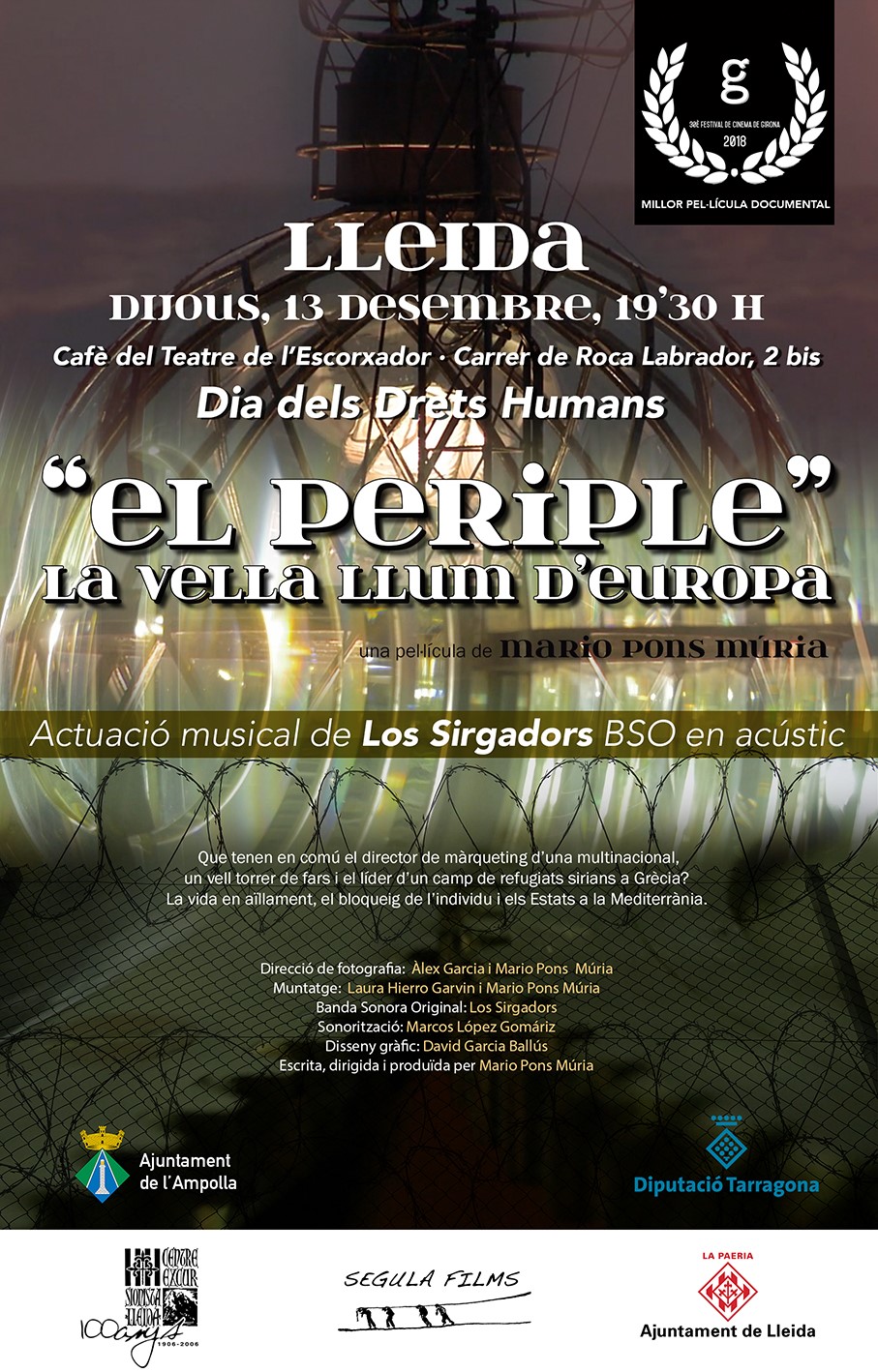 El documental ha rebut diversos premis entre els quals destaca el Millor Documental Internacional al Festival de Cinema de Girona i ha estat presentat a nivell internacional al Centre Cultural de la Plaça de les Fêtes de París. La visualització del documental anirà acompanyada de l’actuació musical del grup musical Los Sirgadors que ens delitaran amb la banda sonora del film.
