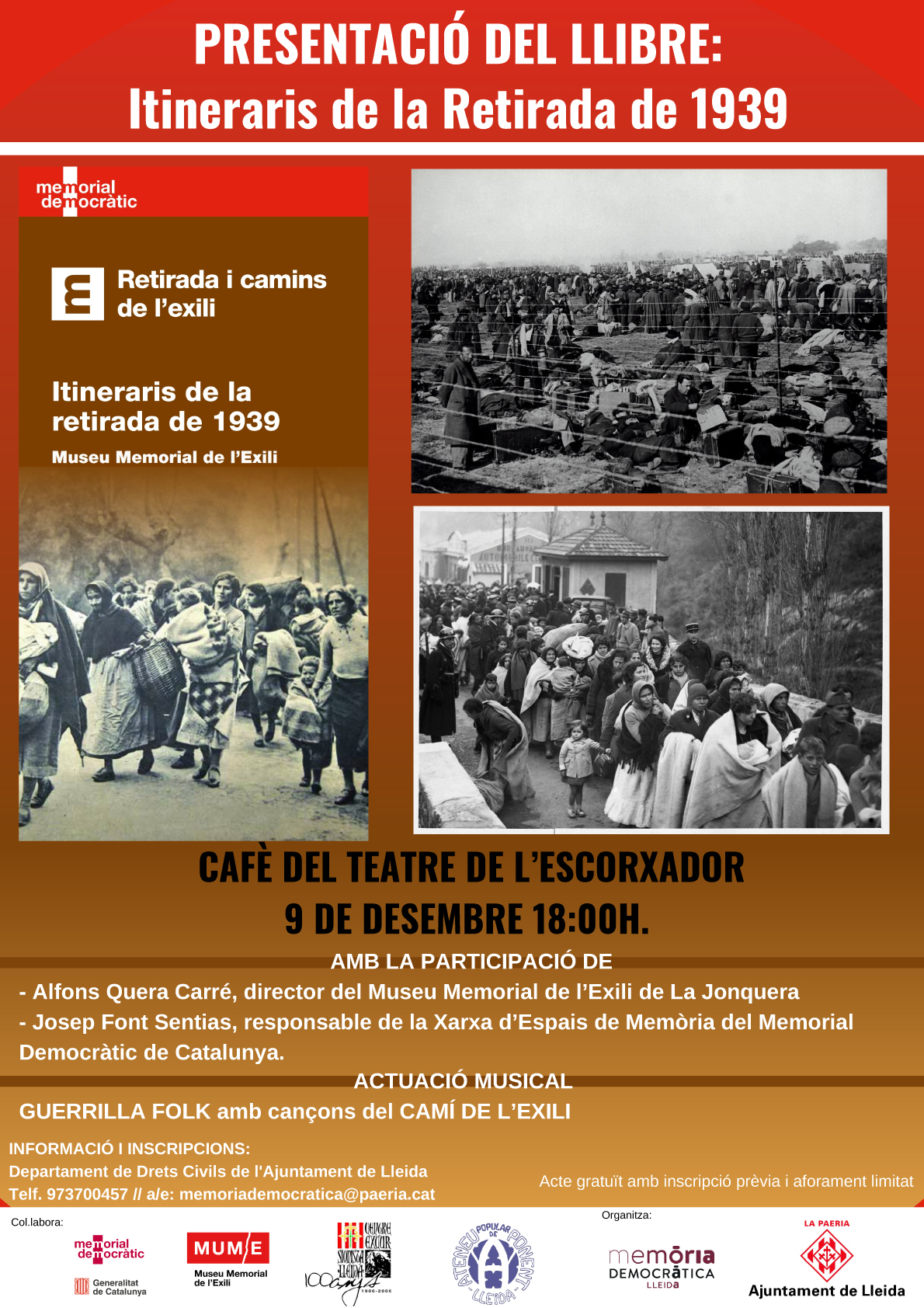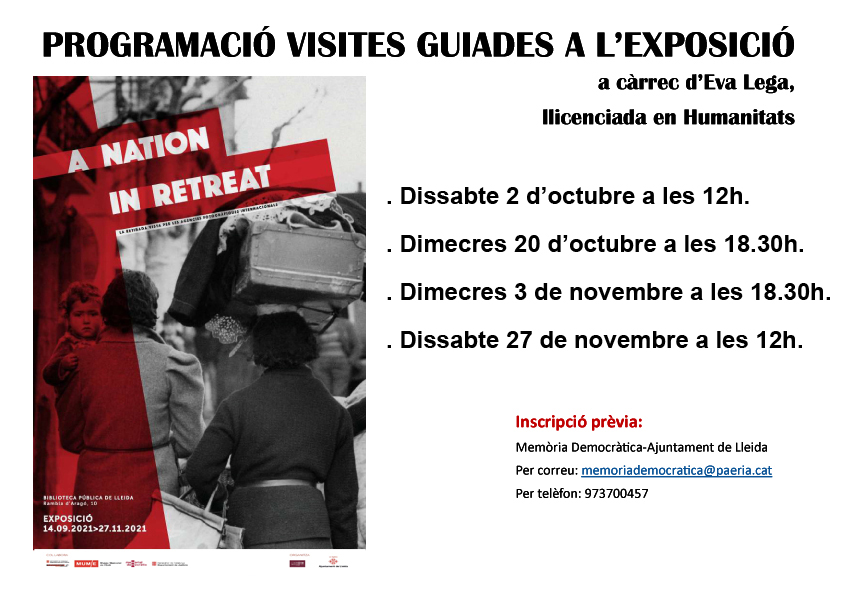 - Del 14 de setembre al 27 de novembre: Exposició a la Biblioteca Pública de Lleida “A Nation in Retreat, la retirada vista per les agències internacionals” (Inauguració 14 de setembre a les 18.00 h)