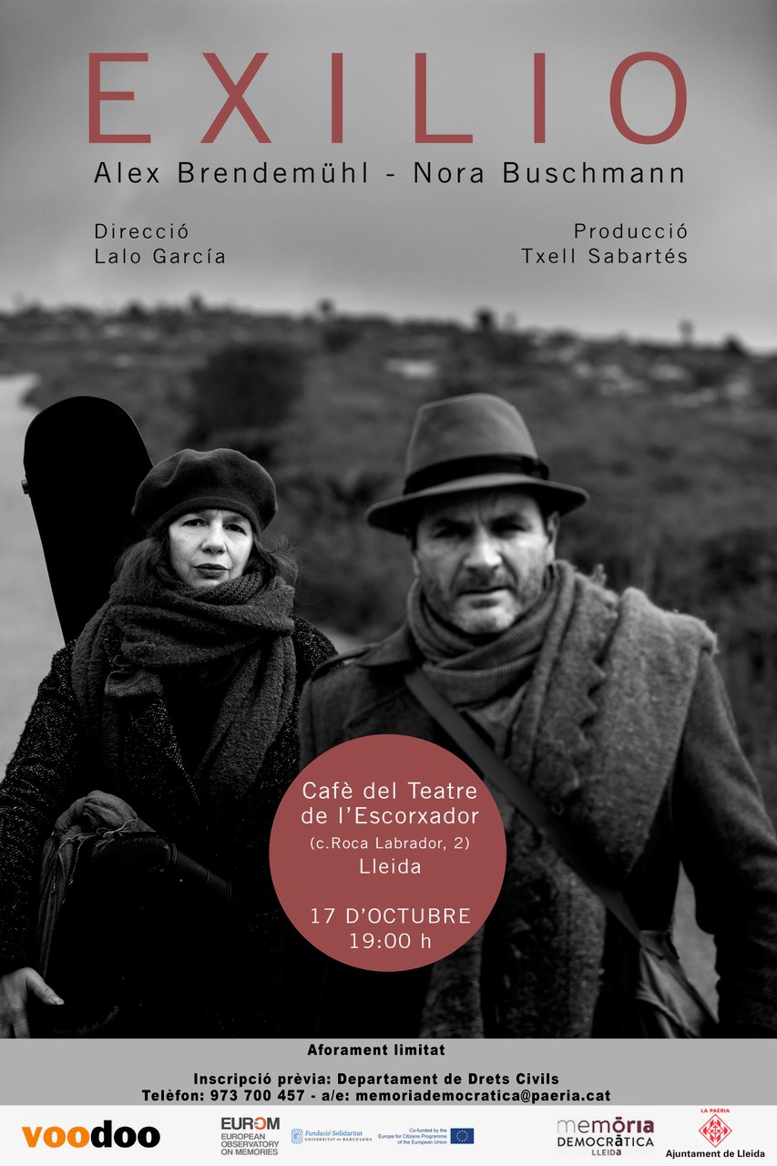 Va arribar a Lleida l’espectacle EXILIO que va comptar amb la participació de l’actor, Alex Brendemühl i la guitarrista, Nora Buschmann. Aquests dos artistes van col·laborar en la creació d’un programa poètic-musical a partir de textos i peces musicals entorn de l’exili resultant de la Guerra Civil espanyola. Va ser un recorregut a través dels textos de Federico García Lorca, Rafael Albertí, José Hierro, Salvador Espriu i Maria Zambrano entre altres. Acompanyat de peces musicals de Manuel de Falla, Joaquín Rodrigo, Isaac Albèniz, etc. Aquesta part poètic-musical anirà guarnida amb imatges de Josep Bartolí, Louis Llech, Josep Narro, Manuel Moros i Samuel Nacar.