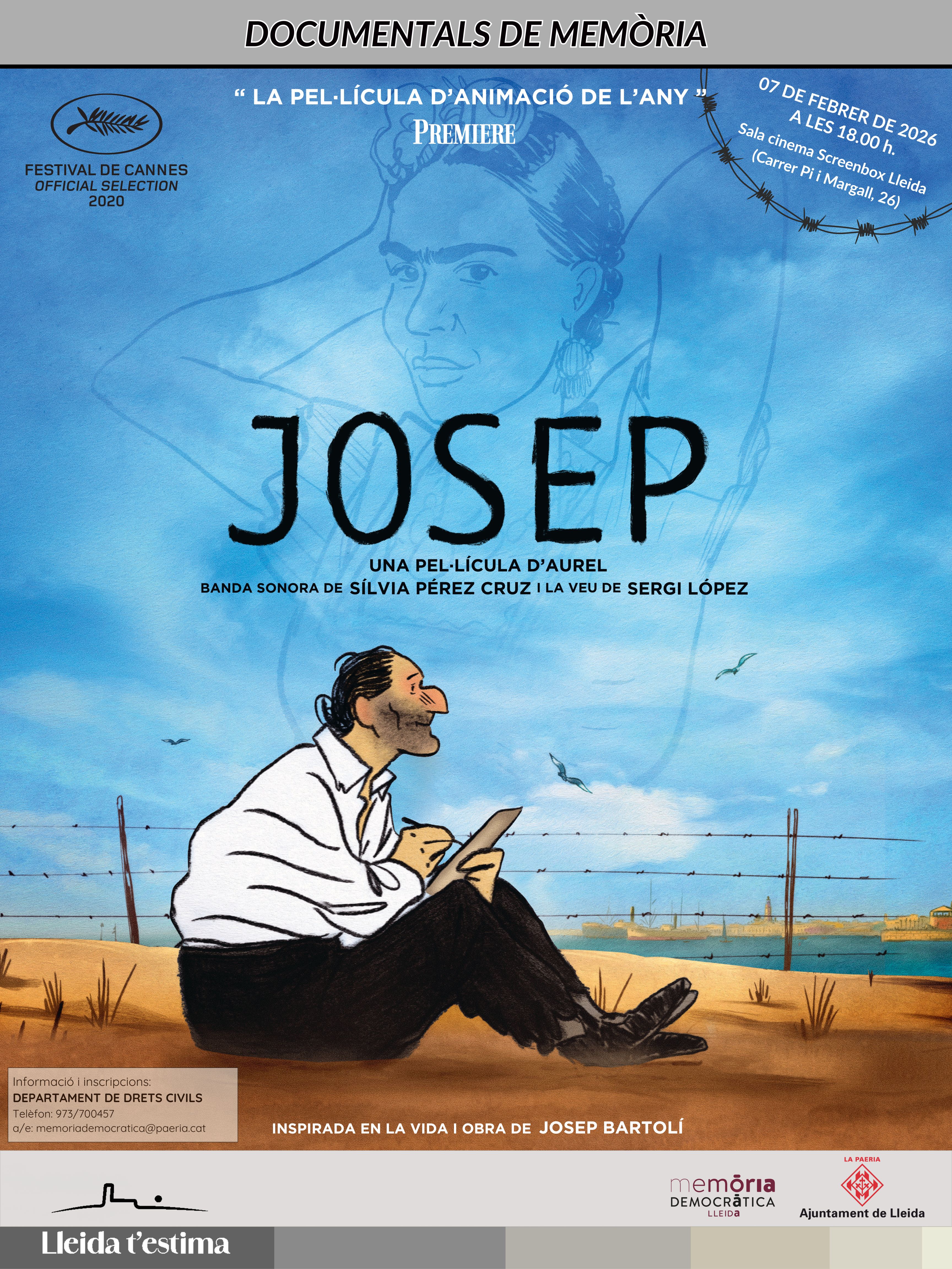 El Departament de Drets Civils de la Paeria va organitzar el 7 de febrer de 2026 la projecció del film d’animació Josep a la sala Screenbox Lleida, en un acte dedicat al record de l’exili republicà. Davant l’interès del públic, la iniciativa va oferir dues sessions consecutives, que en total van aplegar 105 persones.