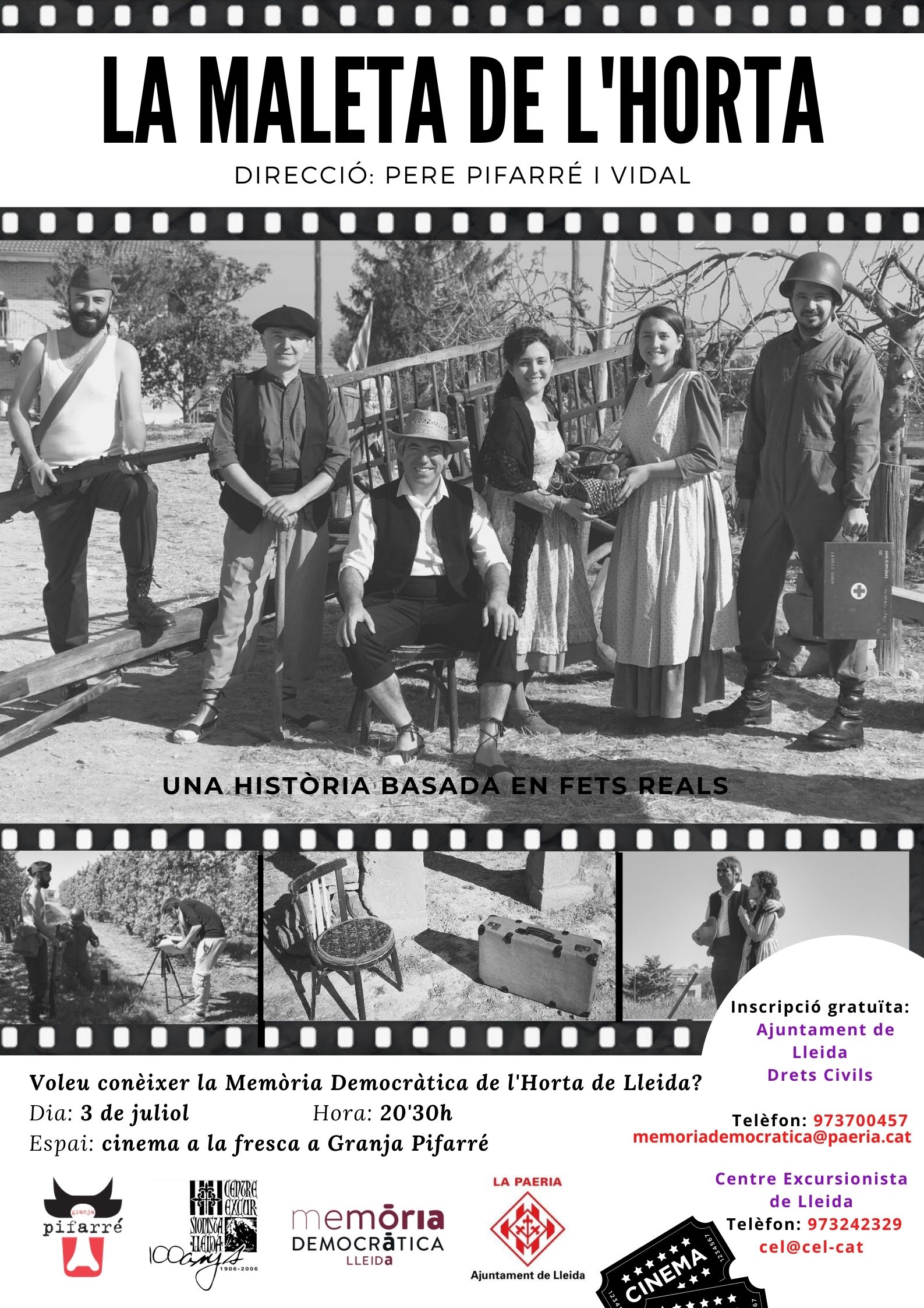 El Departament de Drets Civils de l’Ajuntament de Lleida i l’Associació per a la Interpretació de l’Horta de Lleida van presentar el curtmetratge educatiu "La maleta de l’Horta" a la Granja Pifarré (partida de la Caparrella) en format de cinema a la fresca.